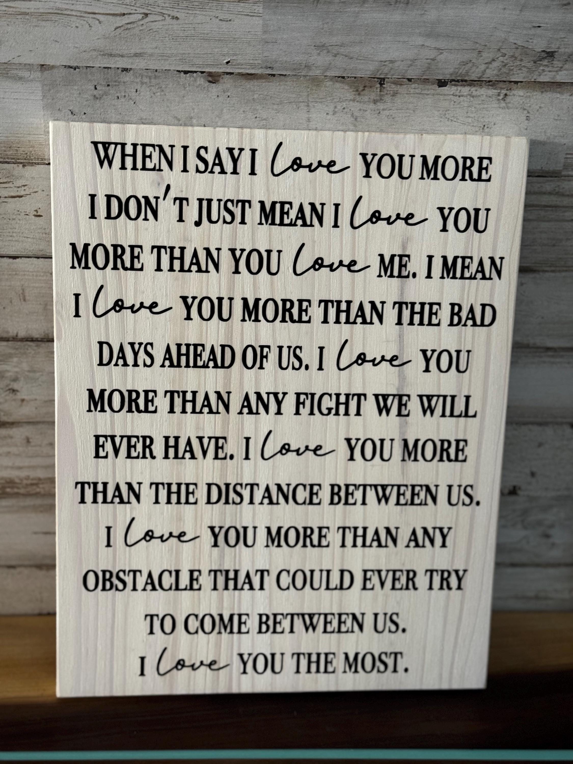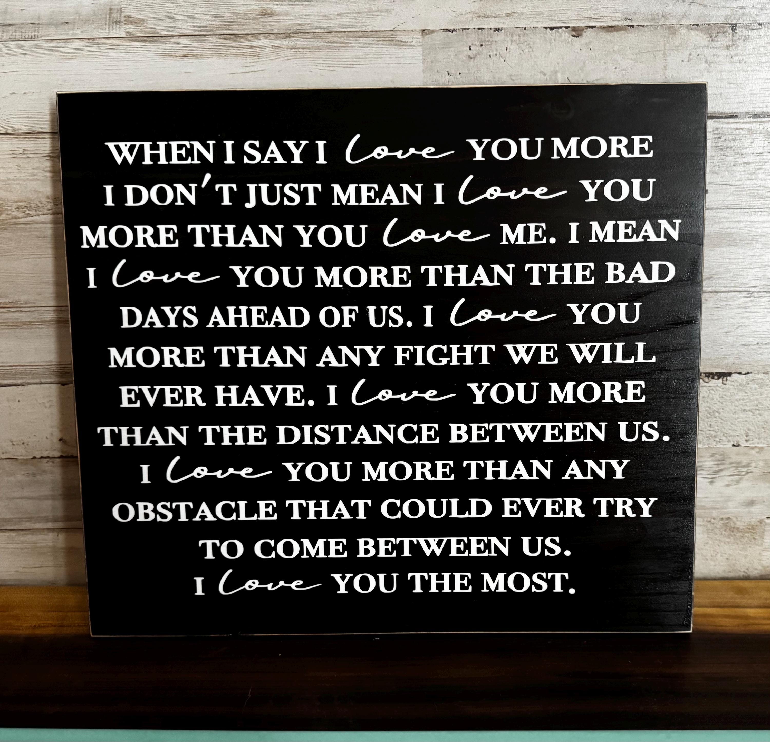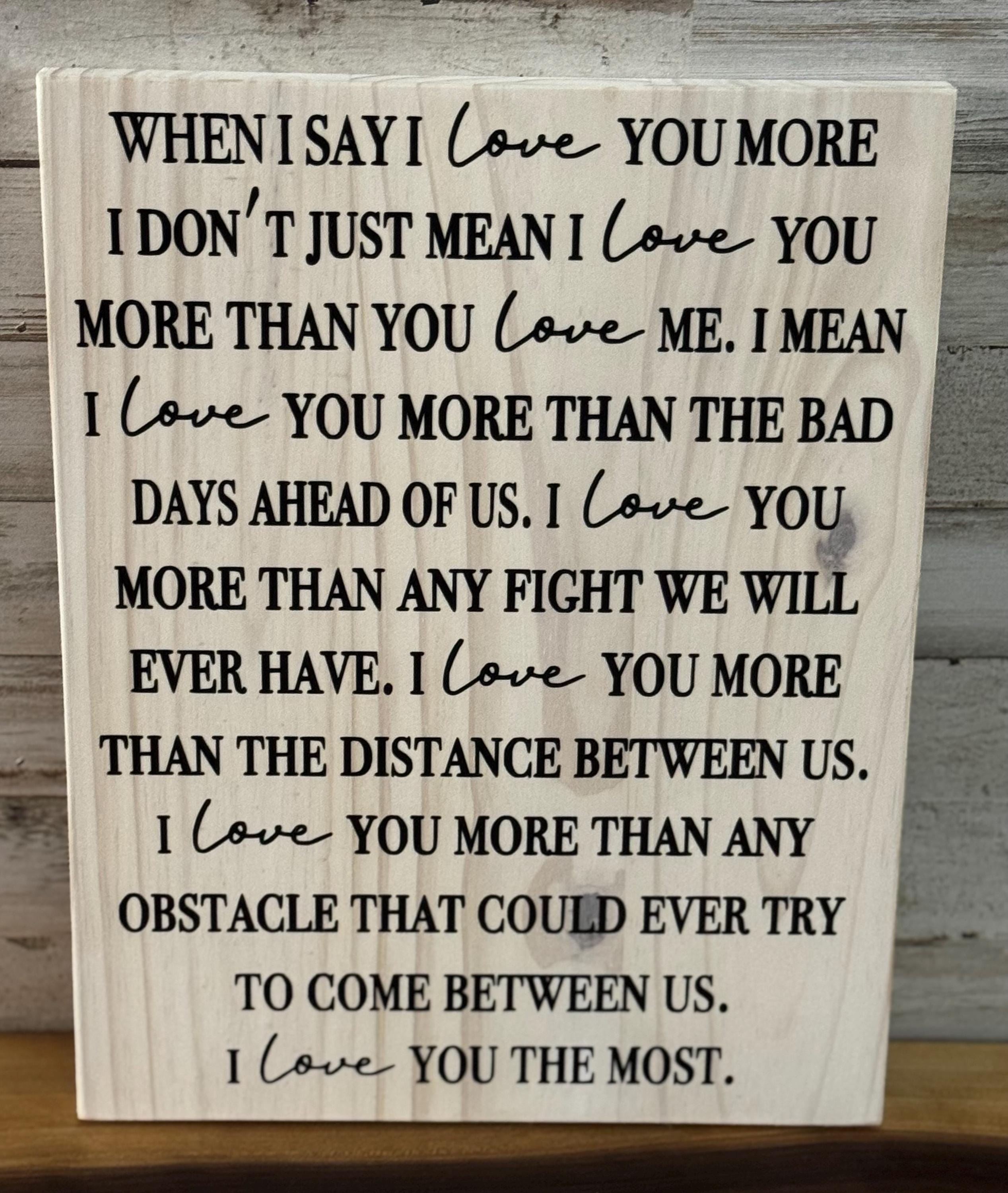 When I say I love you more….. wood sign | gift | Anniversary gift | wife Gift | bedroom decor