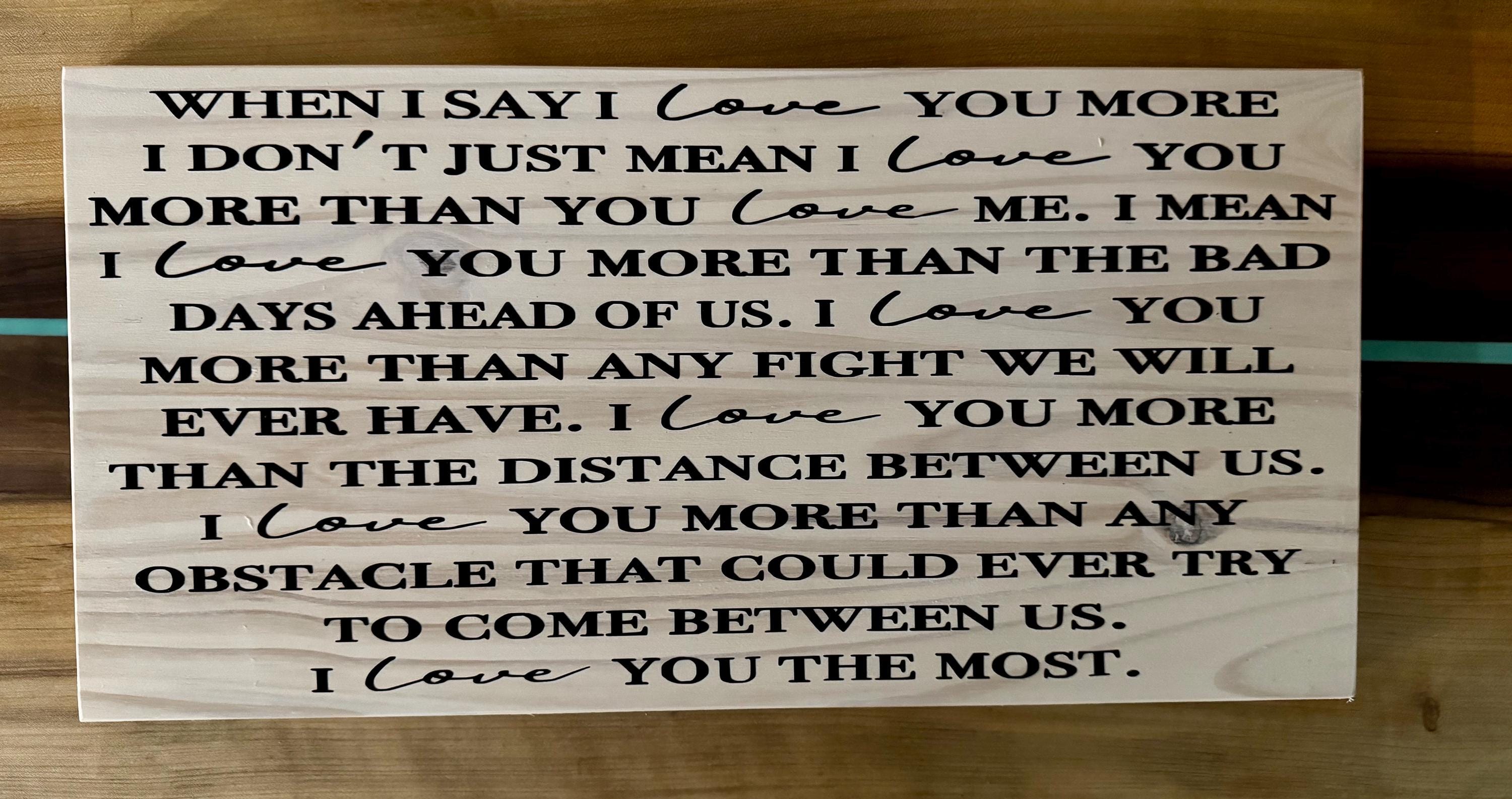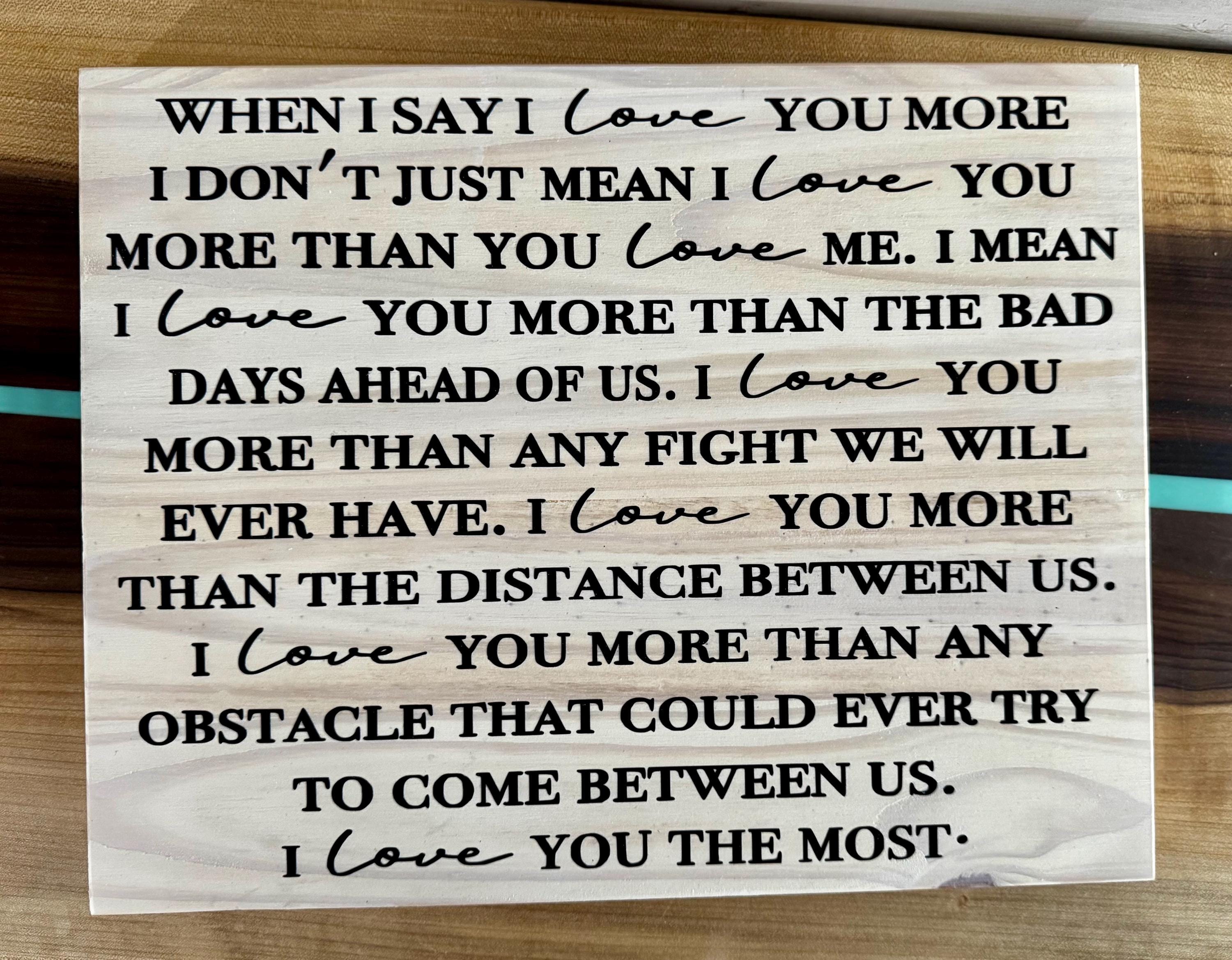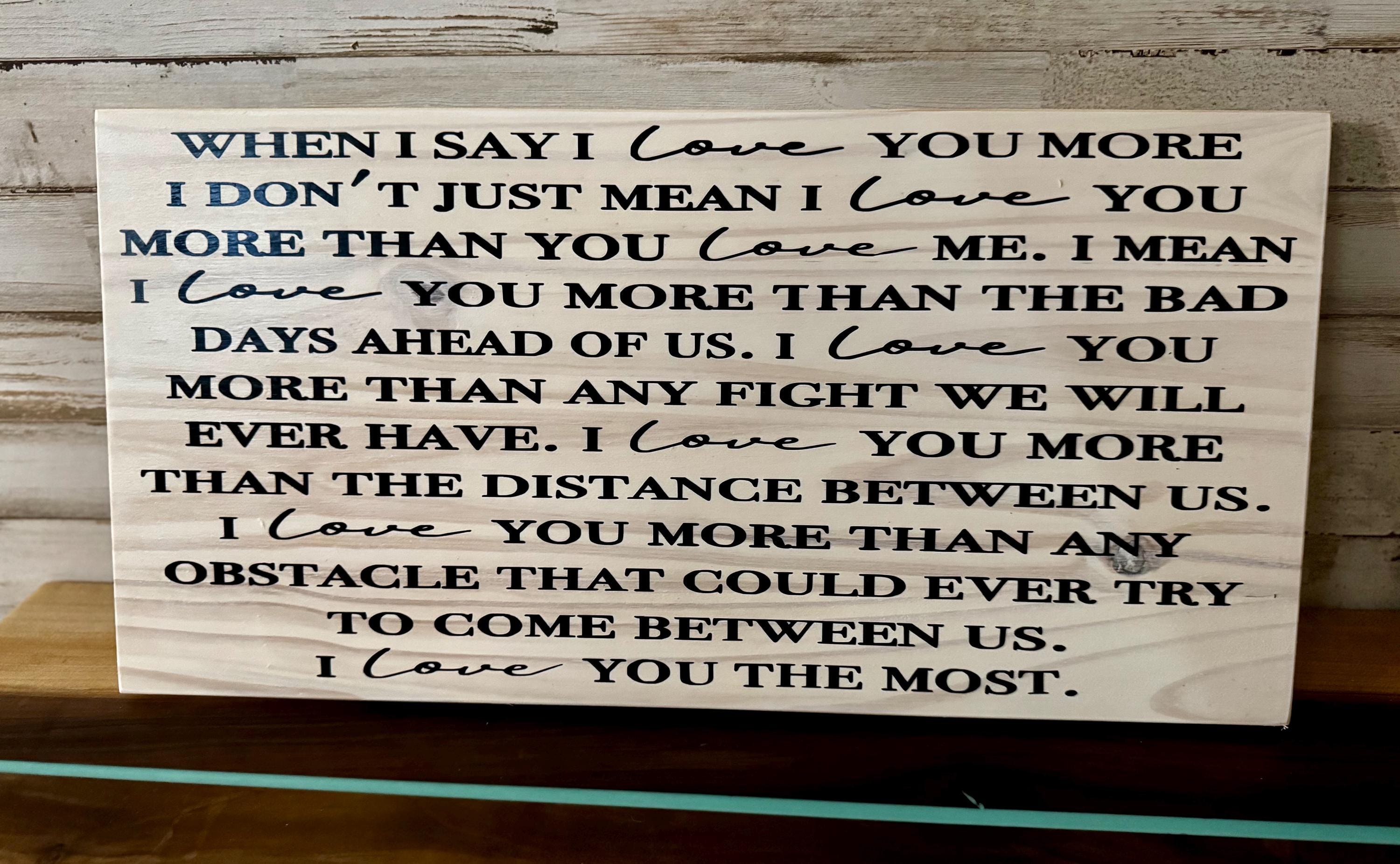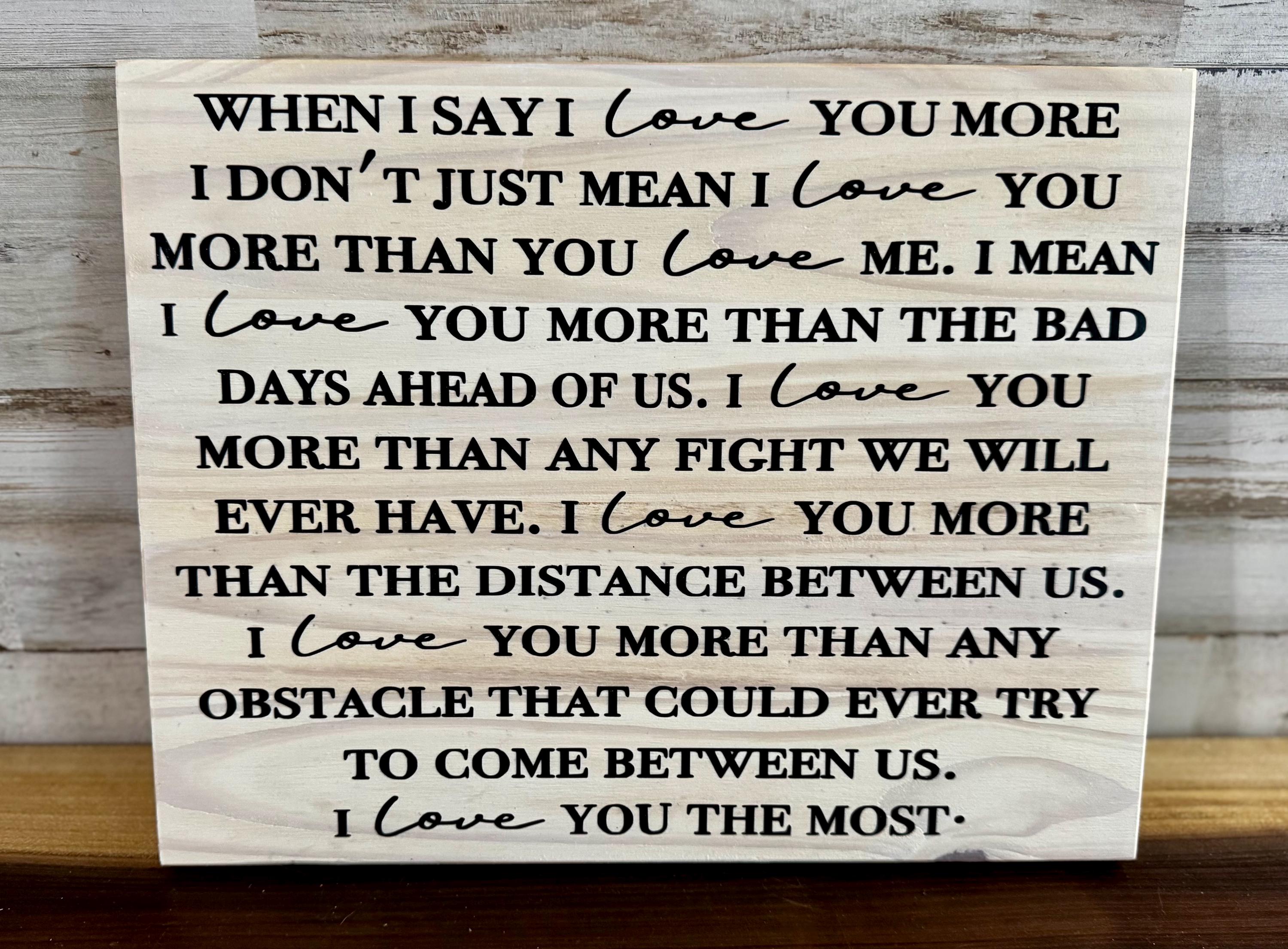 When I say I love you more….. wood sign | gift | Anniversary gift | wife Gift | bedroom decor