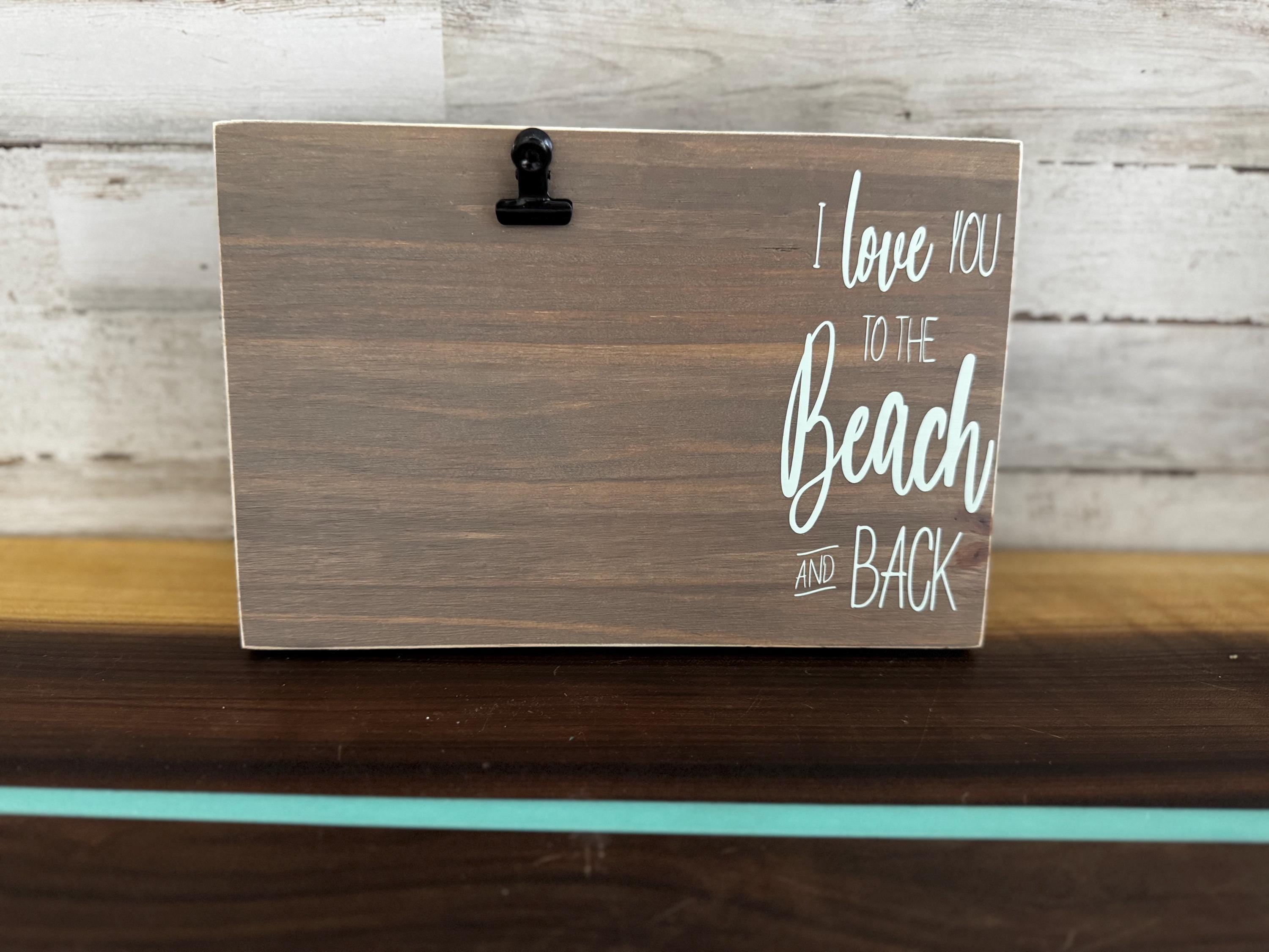 **All our wood products are made from high quality materials, stained, and printed with professional grade vinyl to ensure permanent adhesive. The pictured product is stained in grey. I love what I do and work hard to make sure each sign is beautifully crafted for you. A protective acrylic sealer is placed on all products making them easy to dust. This product includes a wooden stand or sawtooth hanger, and a rustic black clip is attached to the front to hang your photo and all edges have been distressed.