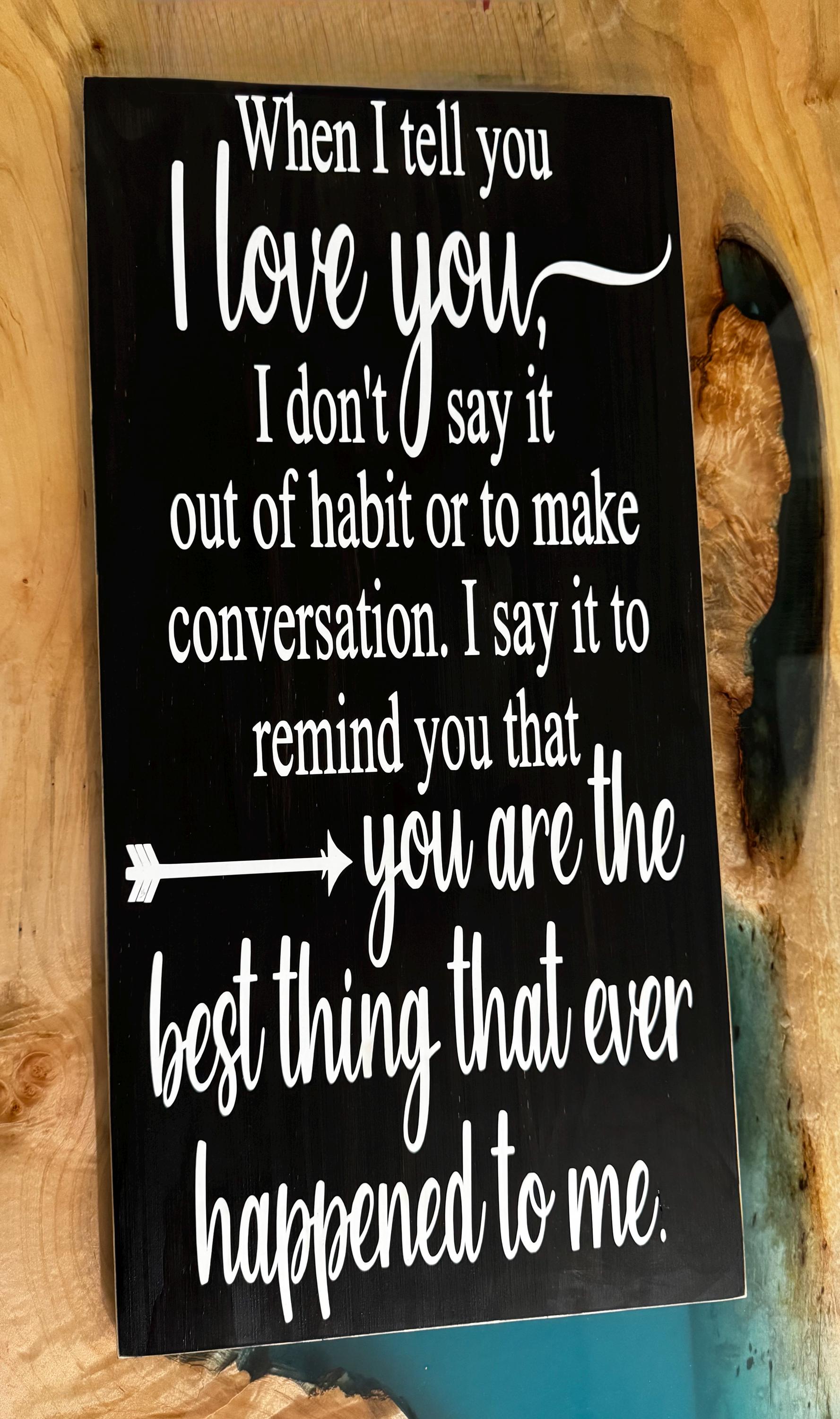 When I tell you I love you I don’t say it out of habit or to make a conversation I say it to remind you that your the best thing that has Ever happened to me | wood decor | Home art | Anniversary gift | wedding