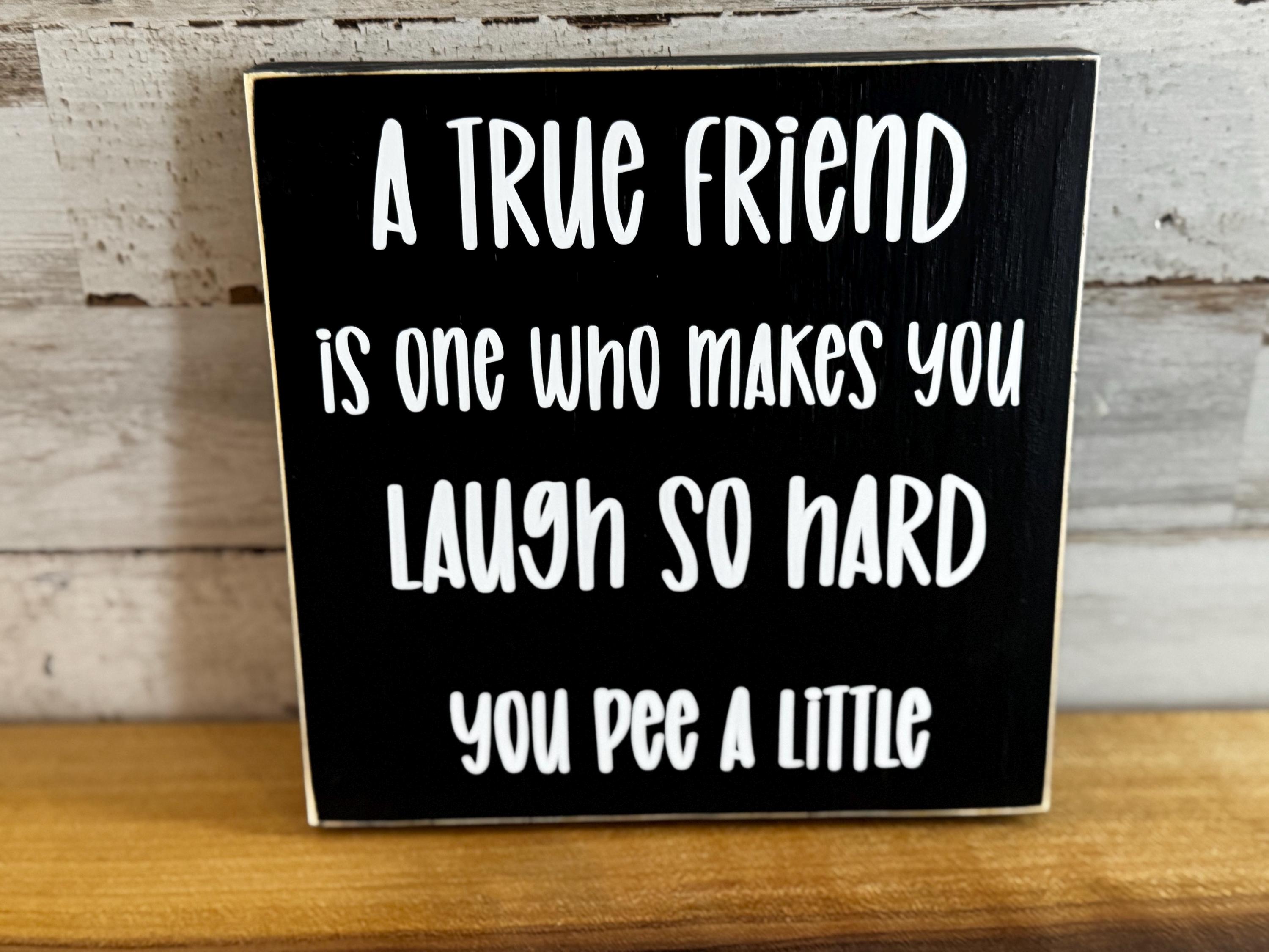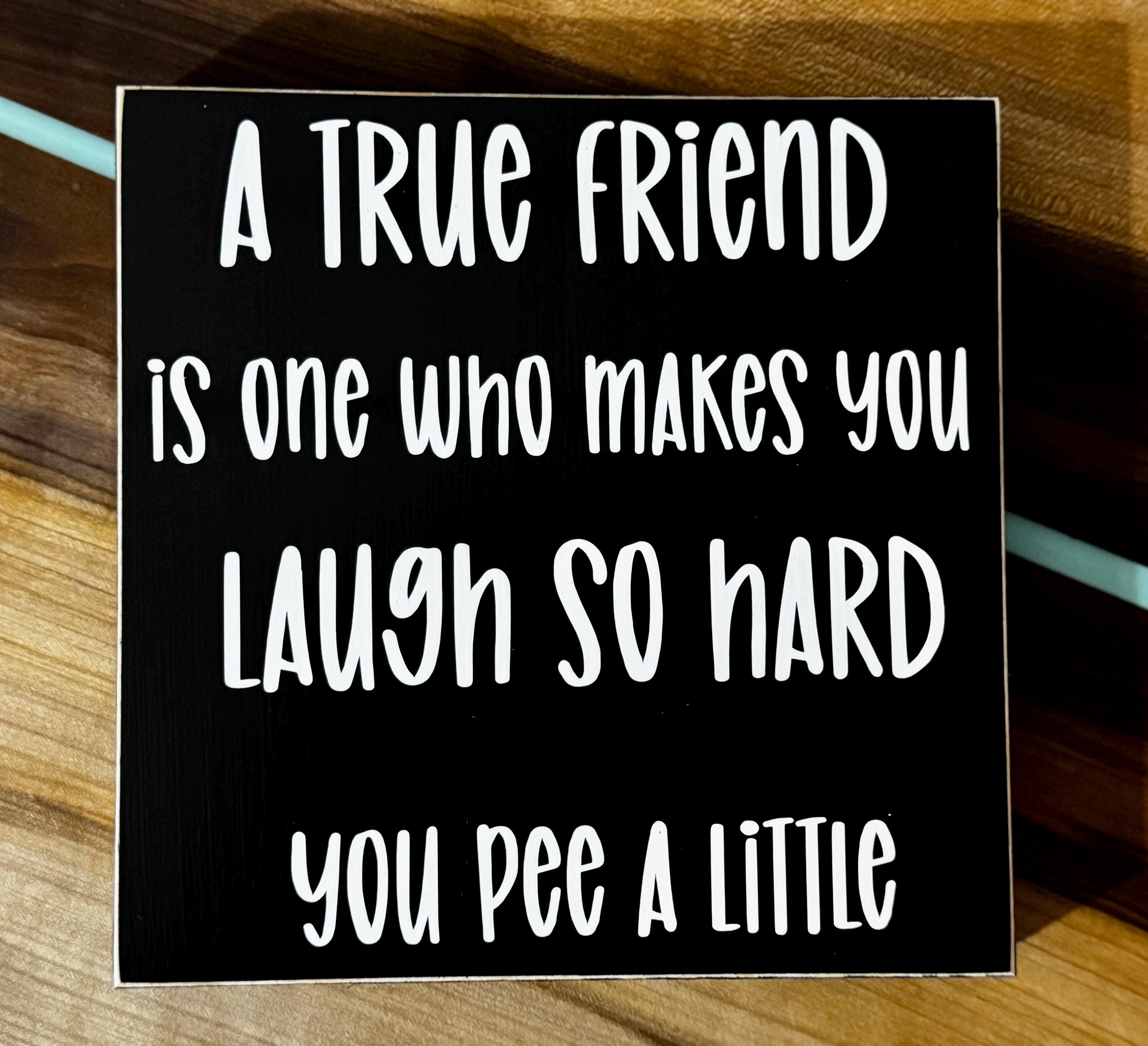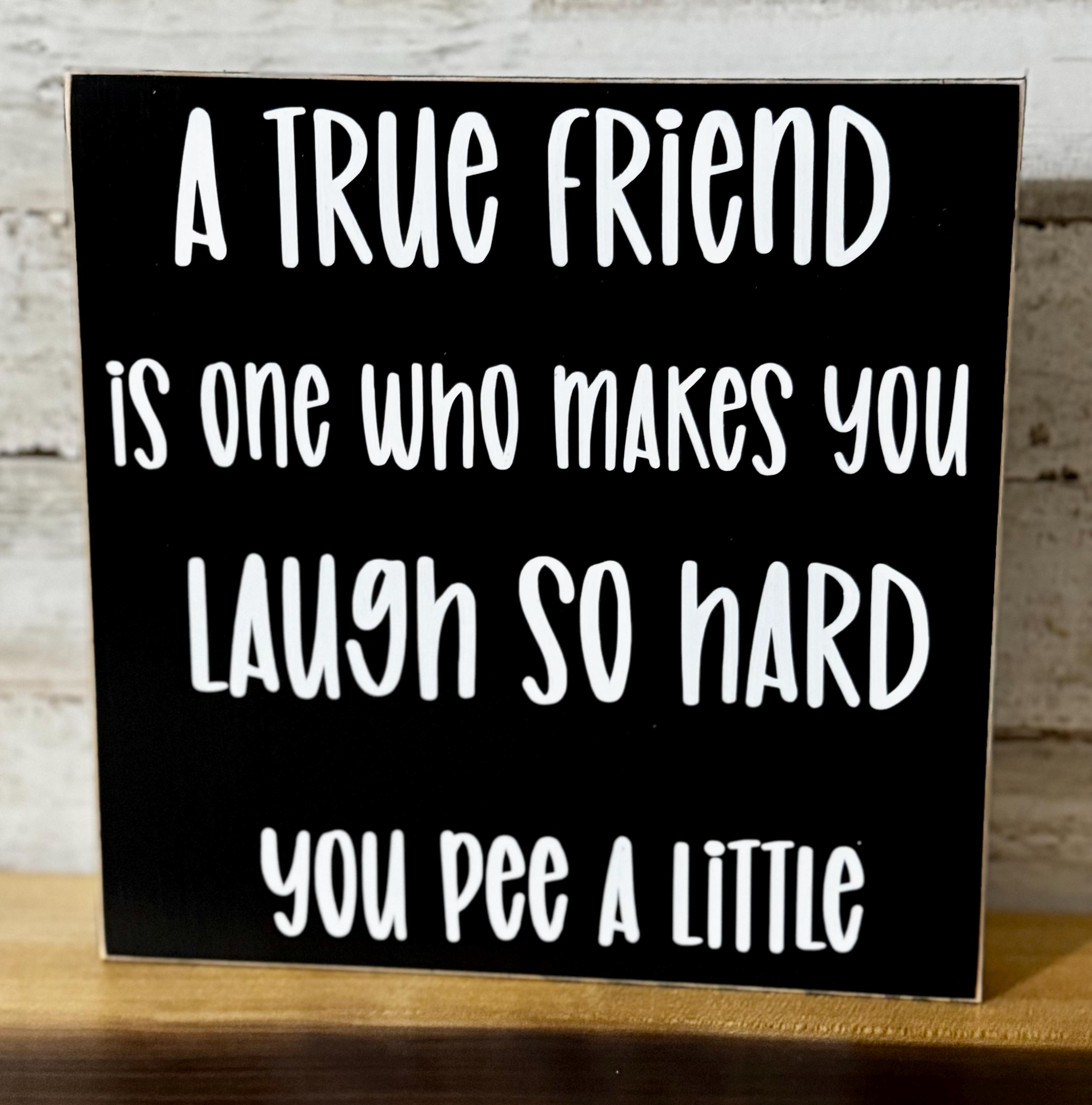A true friend is one who makes you laugh so hard you pee a little Wood sign.