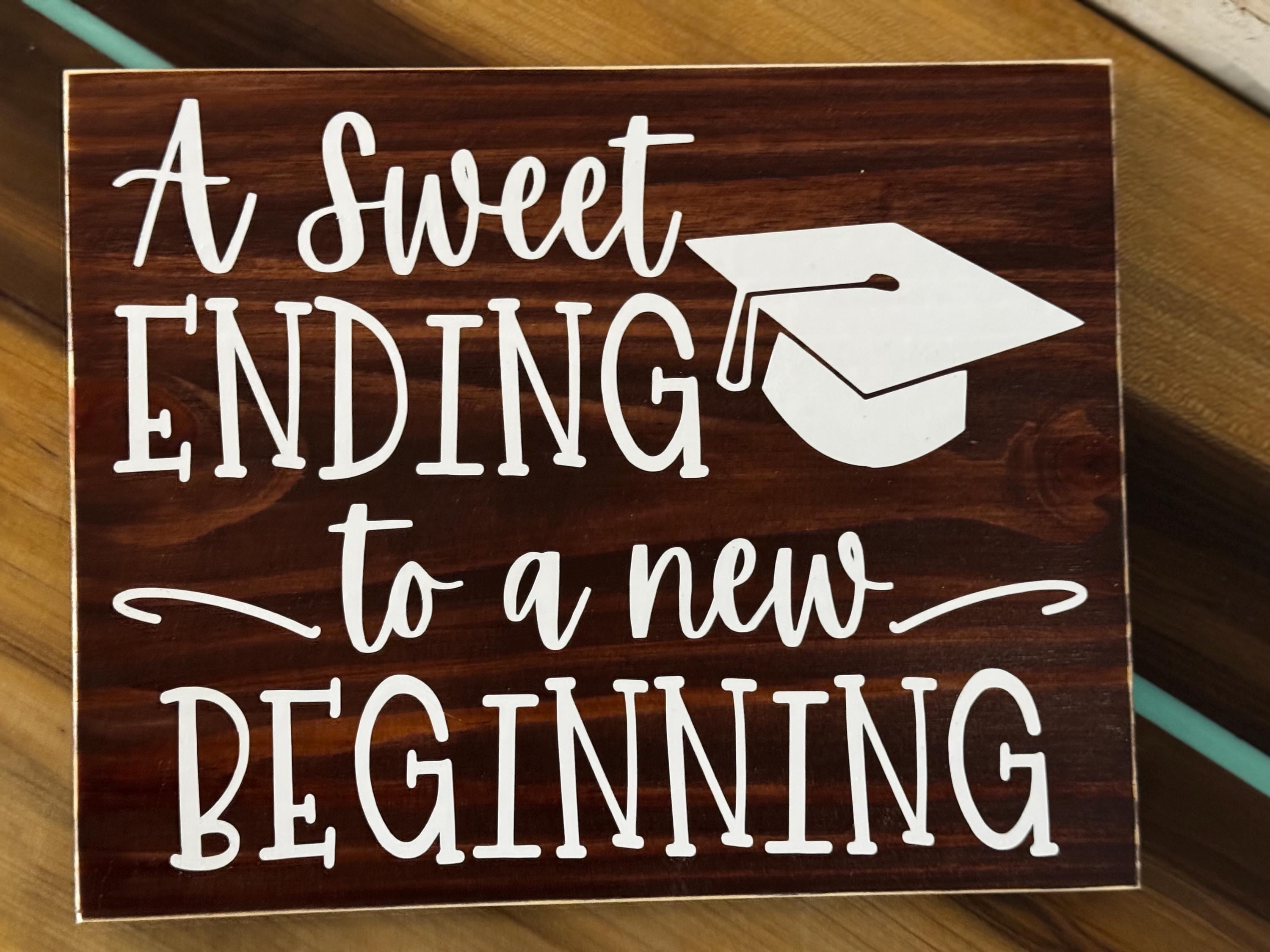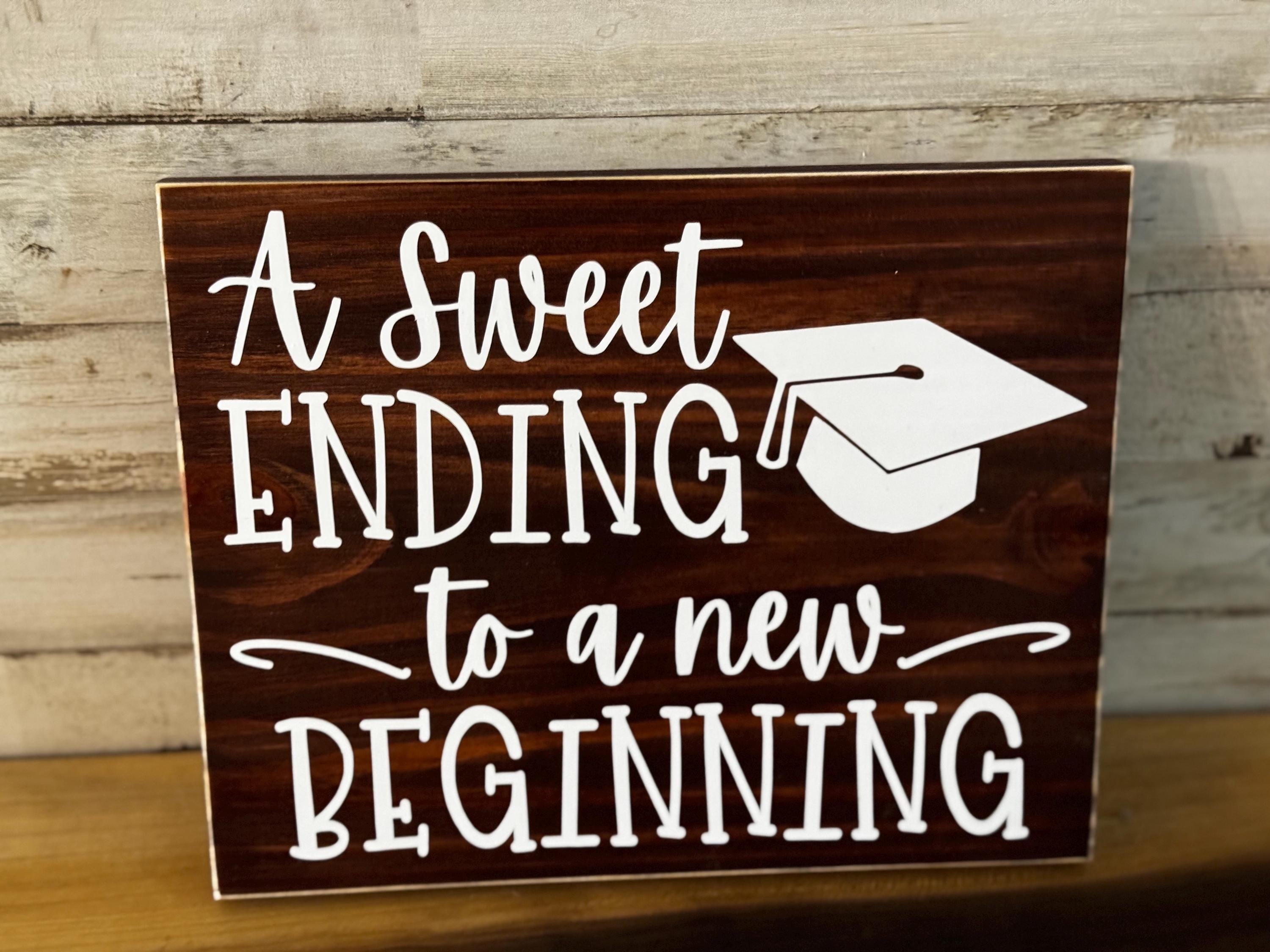 A sweet ending to a new beginning wood sign