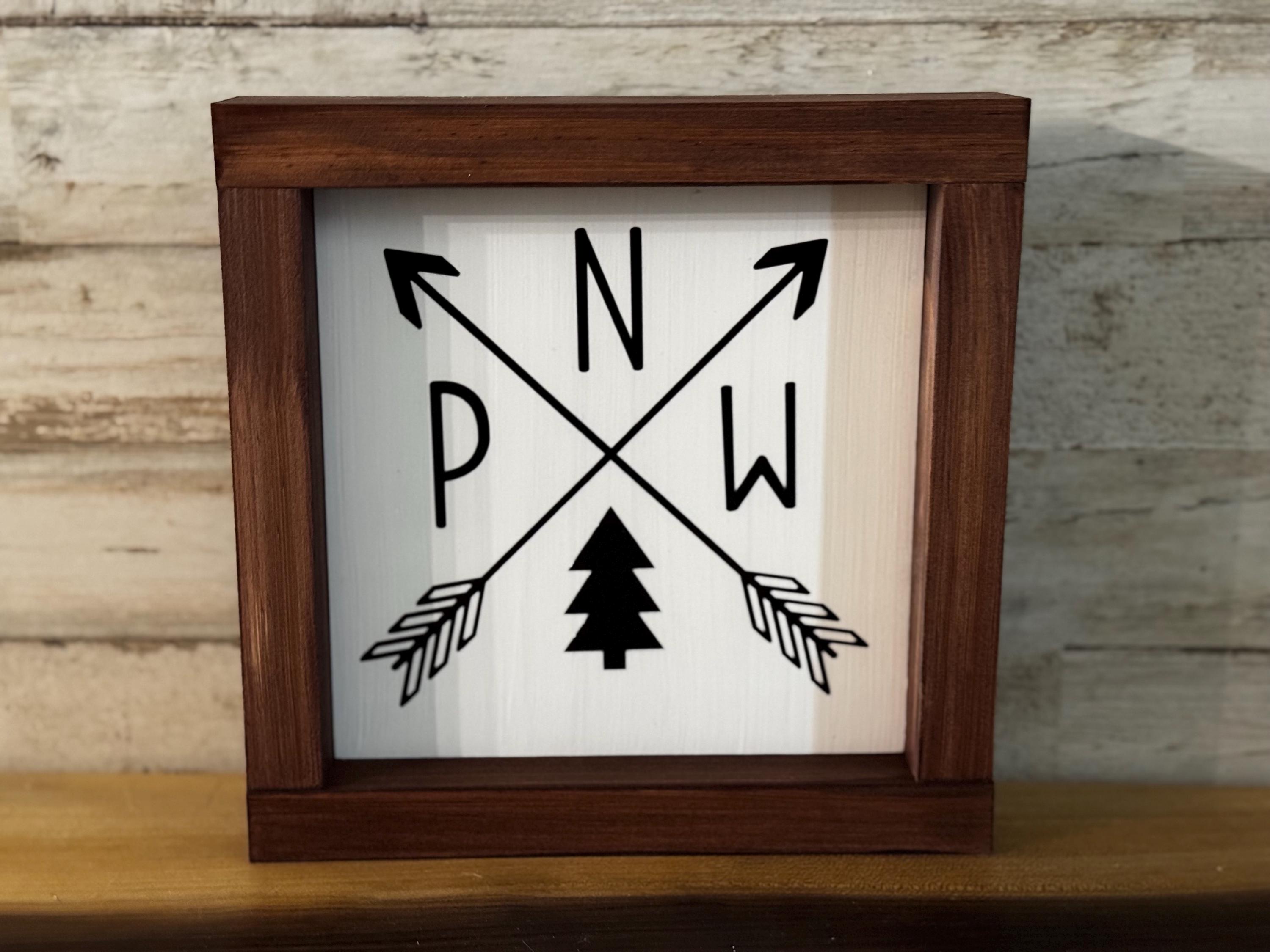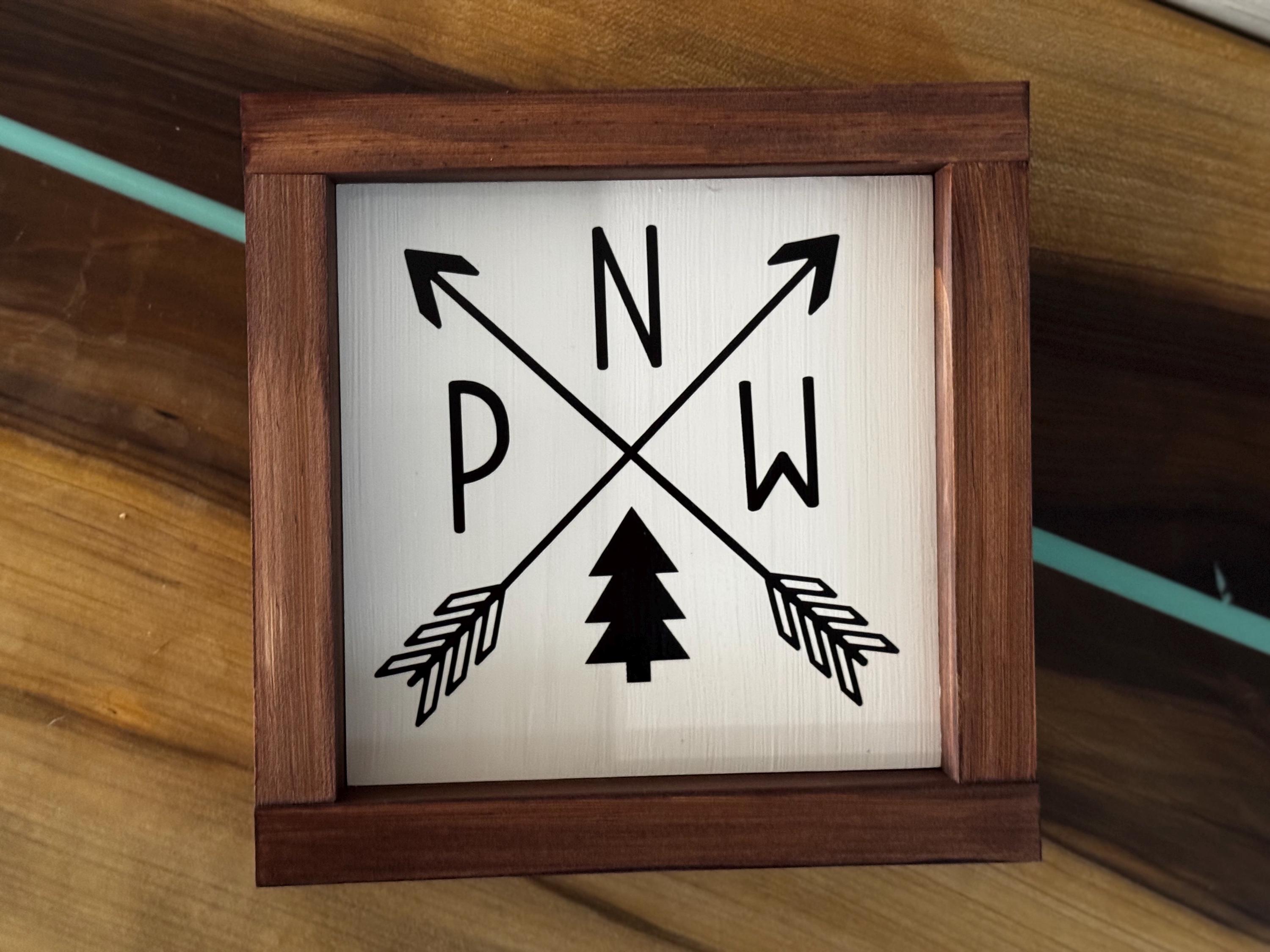**All our wood products are made from high quality materials, stained, and printed with professional grade vinyl to ensure permanent adhesive. The pictured product is stained in brown stain. I love what I do and work hard to make sure each sign is beautifully crafted for you. A protective acrylic sealer is placed on all products making them easy to dust. This product includes a wooden stand or sawtooth hanger, and all edges have been distressed.