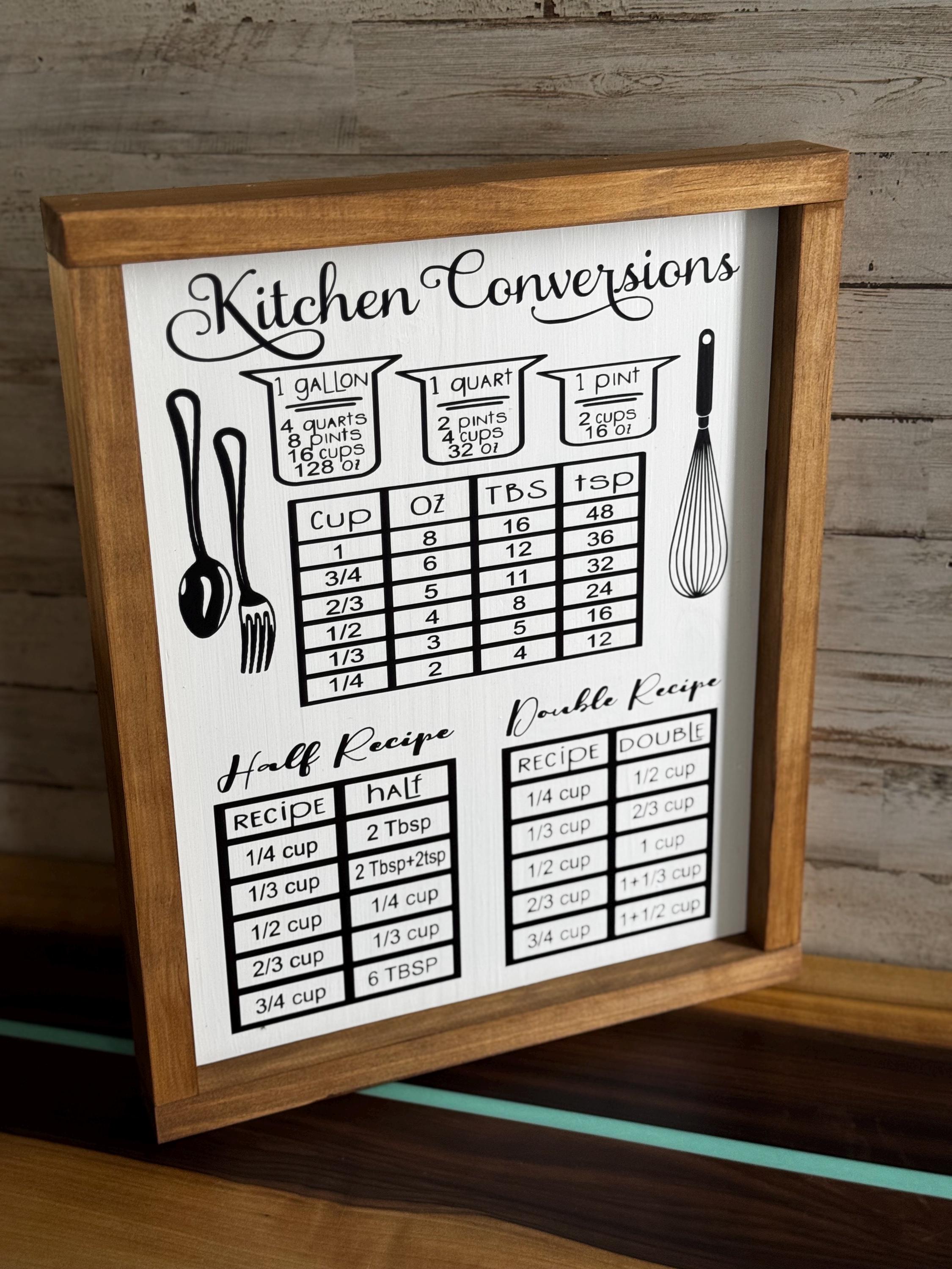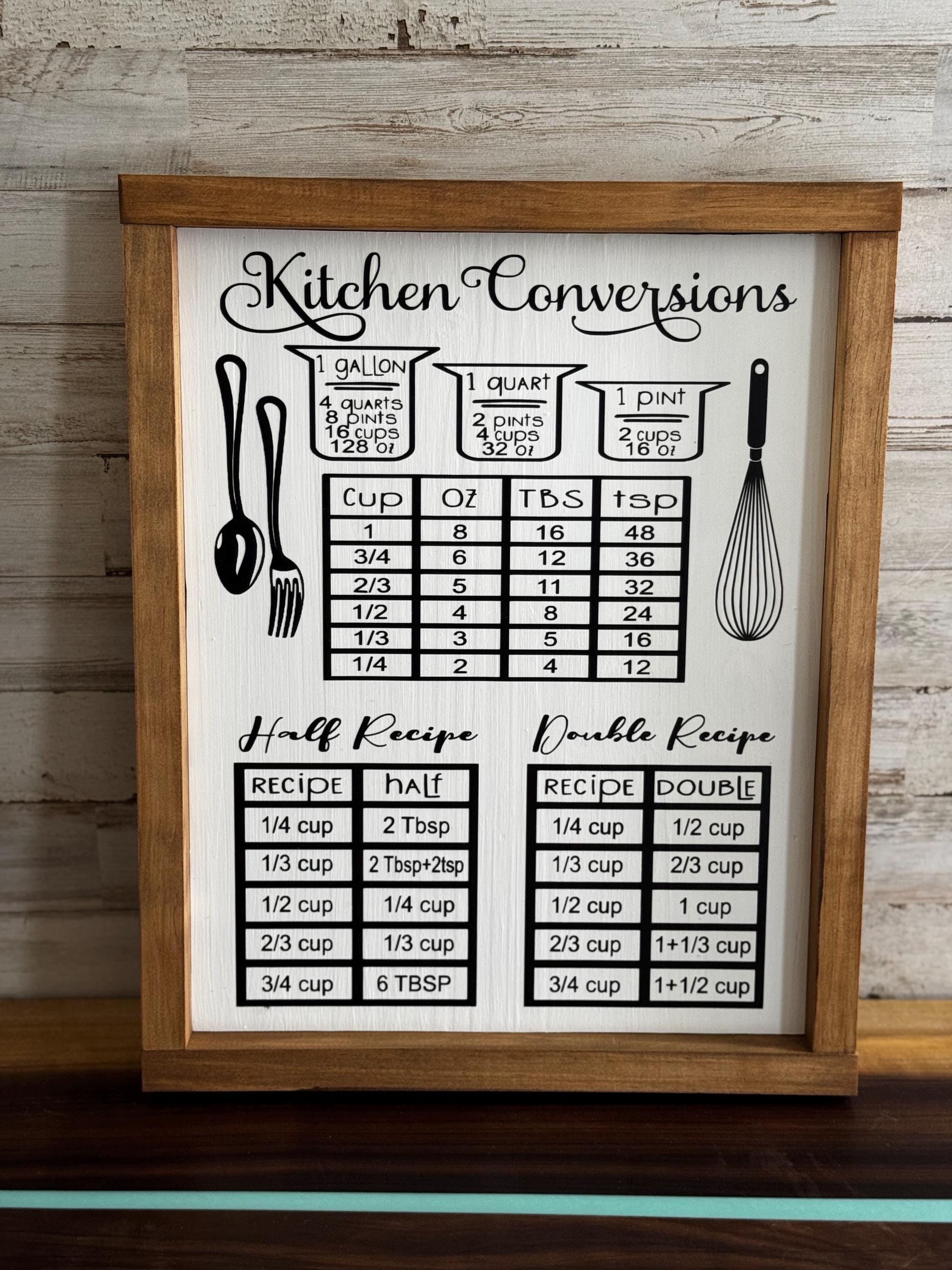 Kitchen conversion sign | Framed sign | 11x14 | Farmhouse decor | Kitchen Decor | Best Seller | kitchen gift | This is what is needed for all the kitchen user out there. This sign will make all conversions for measurements a breeze.
