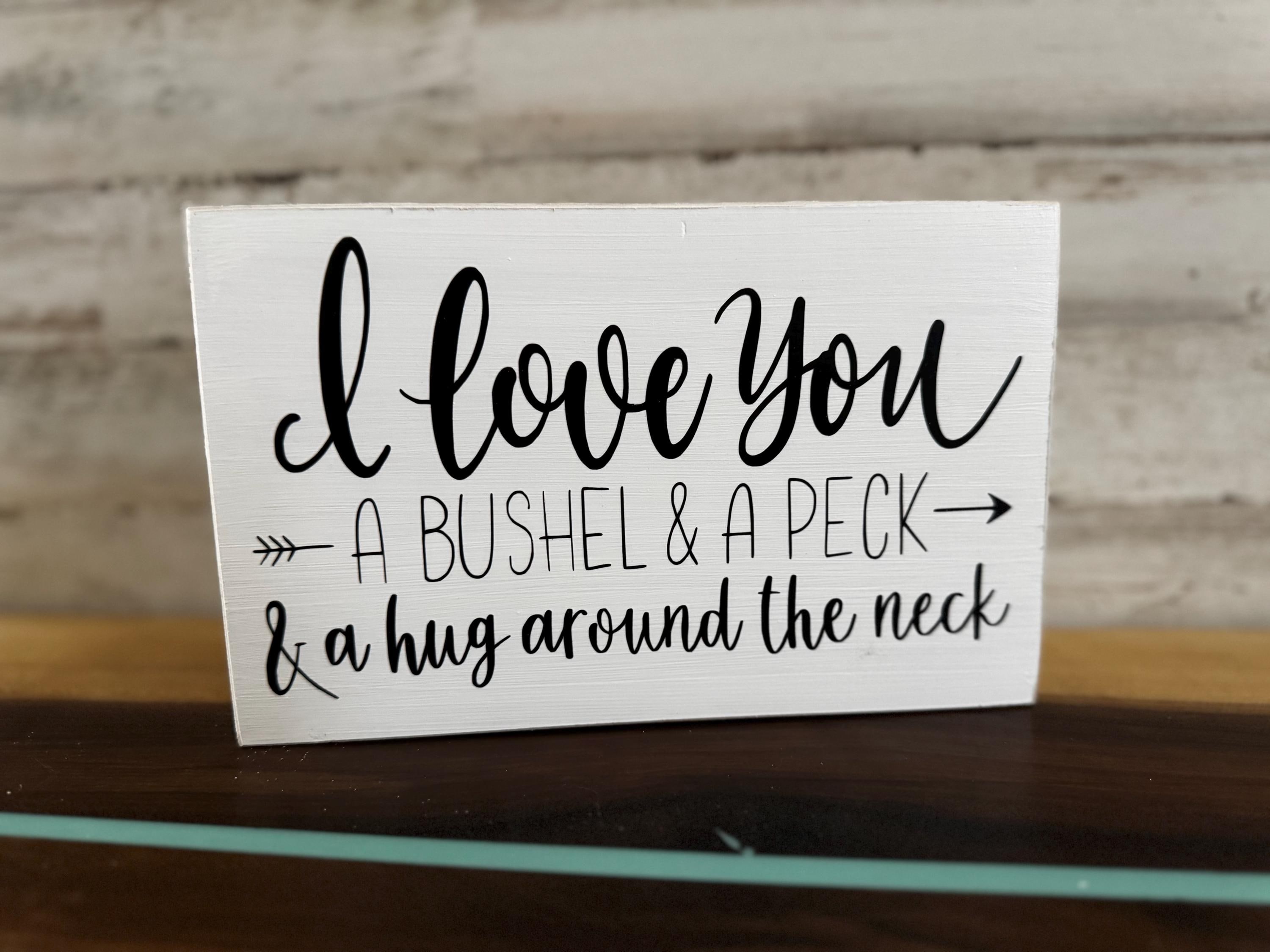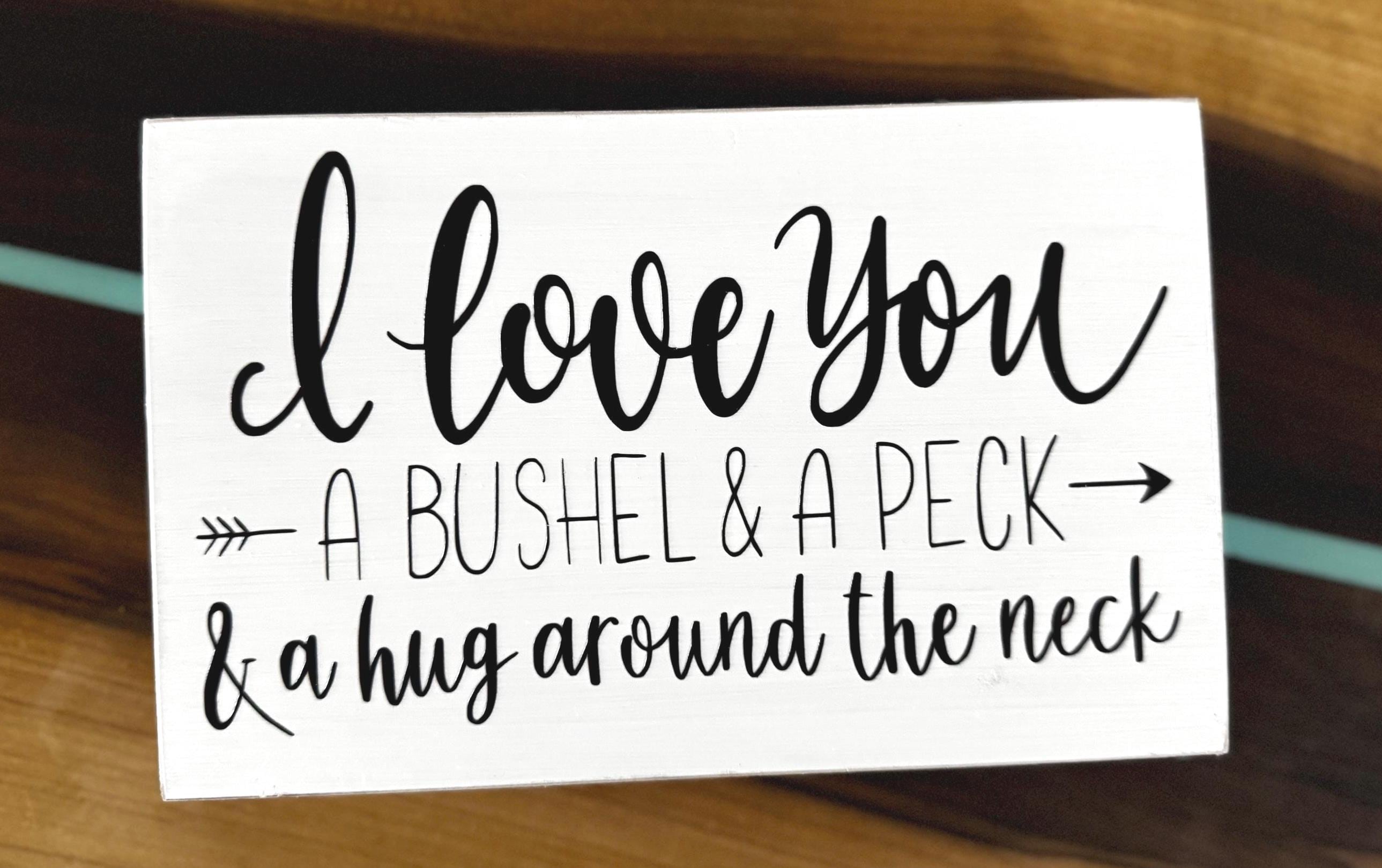 I love you a bushel and a peck and a hug around the neck all wood sign. They make perfect gifts for Mother's Day, Valentine's Day, birthdays, and more. Great for decorating your child's or nursery or just for home decorating.