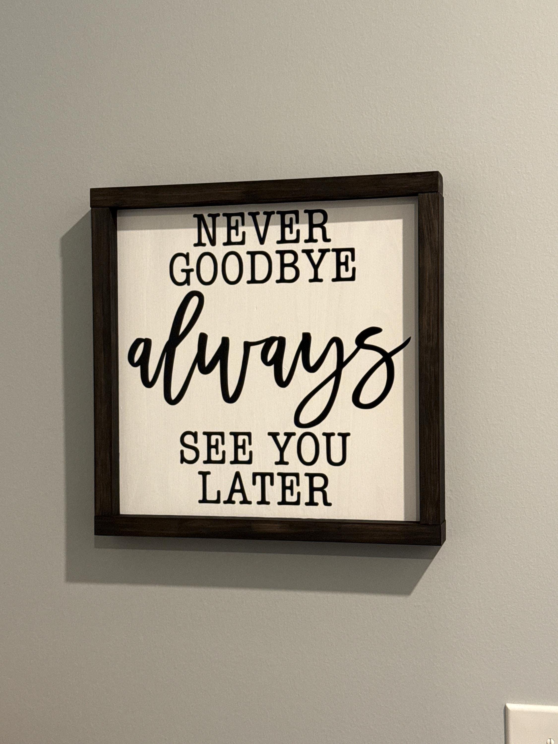 Never goodbye always see you later handmade wood sign| Home Decor| Framed Sign| Farmhouse| Moving| Grief| Friends