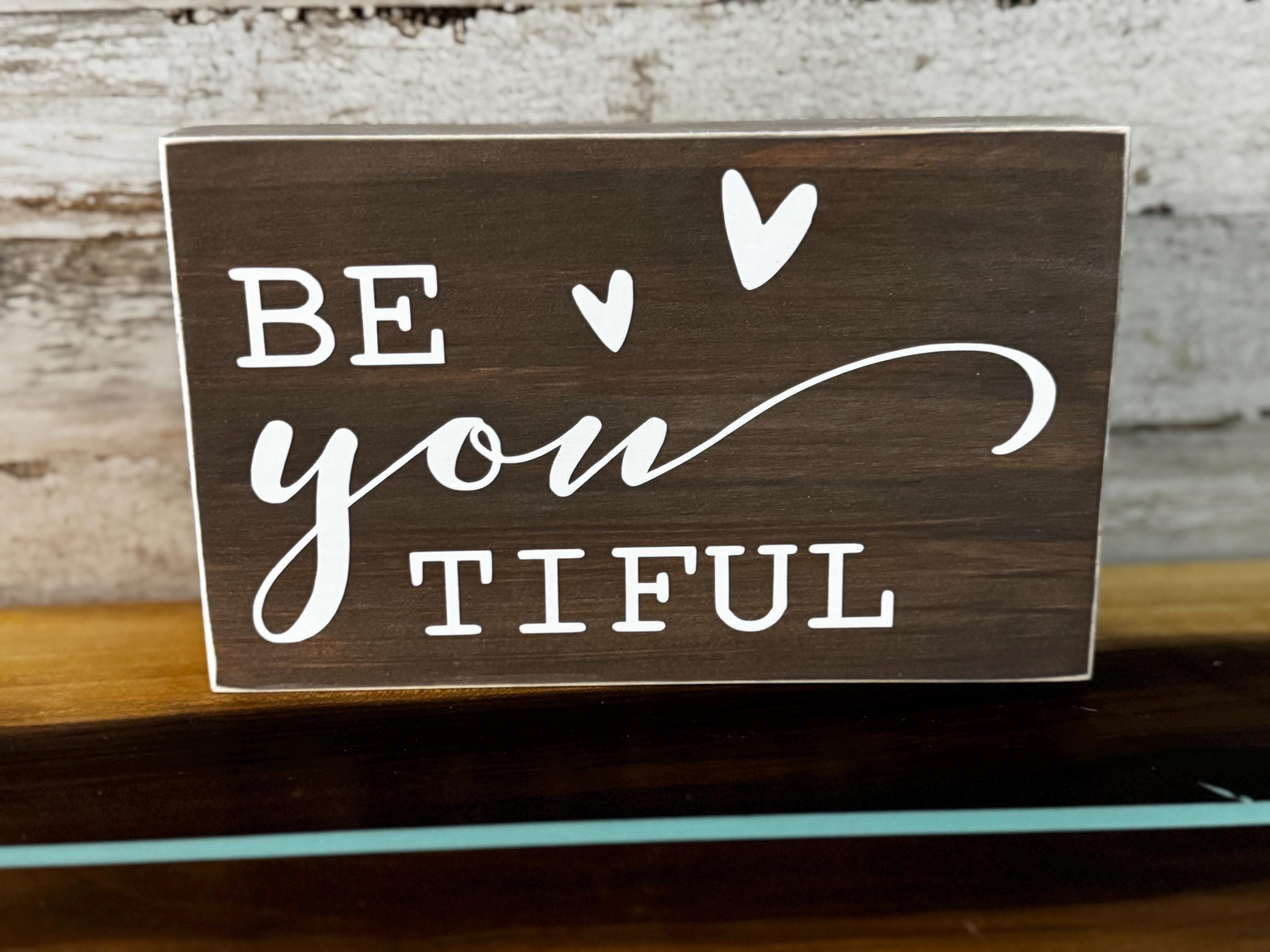 Be You Tiful wood table sign| girls decor| bathroom decor| home decor| vanity.